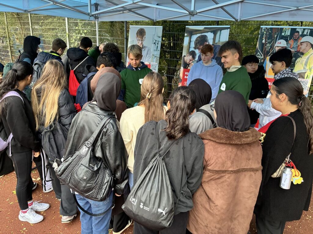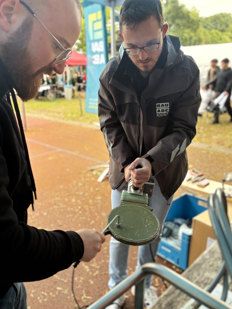 Das BAU ABC war mit einem eigenen Mitmachangebot im Berufeparcours vertreten. Unsere Ausbilder und Auszubildenden stellten verschiedene Bau- und Ausbaugewerke vor und gaben praxisnahe Einblicke in Berufe wie Baugeräteführer, Beton- und Stahlbetonbauer, Rohrleitungsbauer und Isolierfacharbeiter. Die Jugendlichen konnten selbst aktiv werden, ausprobieren, Fragen stellen und erste berufliche Interessen entwickeln.